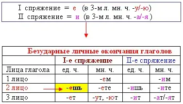Алгоритм нахождения правильного безударного личного окончания глагола по его спряжению: