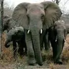 Хобот длинный, пасть с клыками,
