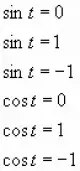 Табличные значения синуса и косинуса расположены на соответствующих осях следующим образом: ![]()