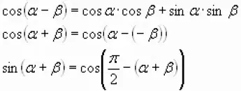 2) Формулы сложения выводятся с использованием скалярного произведения векторов начального и "конечного" радиусов.