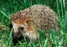 2. Белогрудый еж - похож на обыкновенного ежа, но голова и бока темно-бурые, гораздо темнее, чем горло и брюшко. На груди почти всегда белое пятно. Иглы светлые с темным пояском в верхней части.