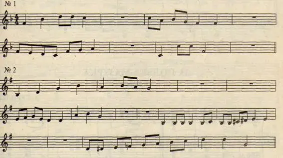 1. Узнавать знакомые песни по ритмическому рисунку, исполняемому без музыкального сопровождения.