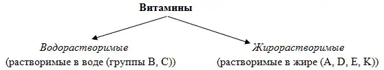 Учитель просит учащихся обратиться к раздаточному материалу (таблица сведений о роли витаминов) на экране высвечивается схема.