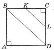 В квадрате ABCD через середины соседних сторон ВС и CD проведена прямая KL. Диагональ квадрата равна 18 см. Найти длину отрезка KL.