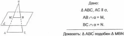 Сторона АС треугольника АВС параллельна плоскости a , а стороны АВ и ВС пересекаются с этой плоскостью в точках М и N. Докажите, что треугольники АВС и МВN подобны.