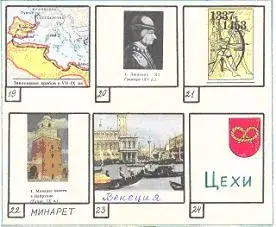 Его можно сделать самостоятельно, привлекая к изготовлению лото учащихся, используя компьютерную технику, старые учебники и т. д. Затраты труда окупятся на уроках. Число карт лото может быть 10 - 20. Каждая карта содержит 6 - 8 смысловых иллюстраций, содержащих информацию по изученному периоду, теме, разделу: дата, карта, личность, понятие, термин, исторический факт. Все иллюстрации на картах пронумерованы. К каждой иллюстрации составляется вопрос, который записывается на карточке с соответствующей нумерацией. Таким образом, можно охватить контролем весь спектр фактического материала.