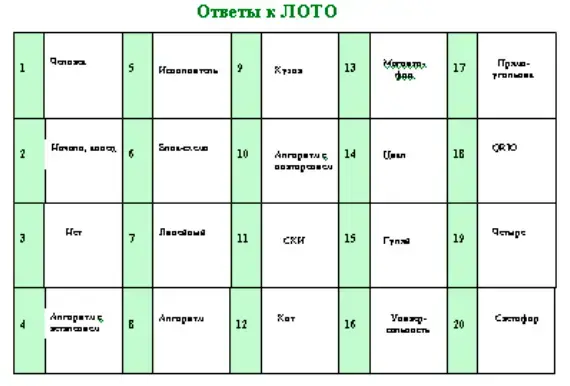 2 конкурс- "ЛОТО" (20 вопросов ) - 5-7 минут (1 балл за каждый правильный ответ). См. рис. 5. Приложение 5