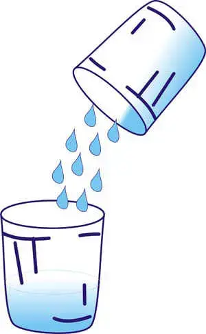 (Педагог переливает воду из ведёрка в банку, из банки в стакан.)