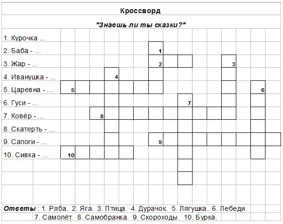 Каждой команде дается кроссворд. Задание: разгадать кроссворд на время - 3 минуты. Сколько слов будет отгадано, столько очков получает команда.