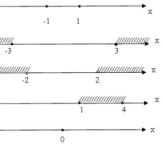 |x| = 1 |x| ≥ 3 |x| > 2 1 < |x| < 4 |x| = 0 |x| = -1