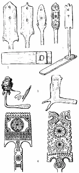Ни одно орудие крестьянского труда не украшалось так многообразно, любовно, как прялка. Дух захватывает от силы народной фантазии и искусства, когда видишь резные, инкрустированные (даже