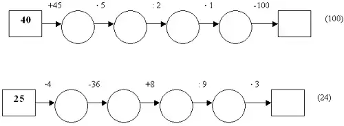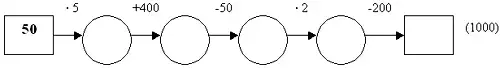 (Ученики считают устно, а затем показывают карточки с ответами. Если ответы разные, то цепочку рассчитывают все вместе).