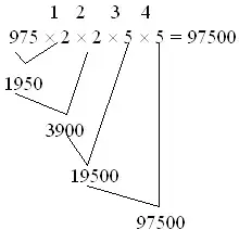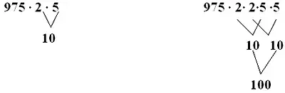 Число 975 в первом выражении умножали на одну "2" и "5", а во втором на две "2" и "5".