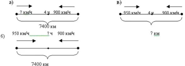 (Из двух городов, расстояние между которыми 7400 км, вылетели одновременно навстречу друг другу самолеты встретились через 4 часа. Скорость одного самолета 950 км/ч. Определи скорость второго самолета.)