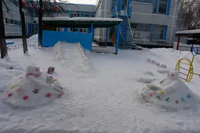 В то же время, чтобы разнообразить движения детей на прогулке на каждом групповом участке имеются следующие группы снежных фигур: