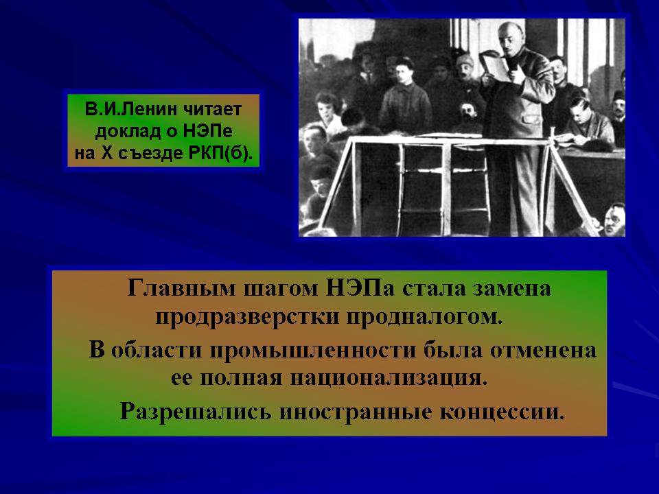 На Х съезде был провозглашен курс на переход от политики военного коммунизма к Новой Экономической политике.