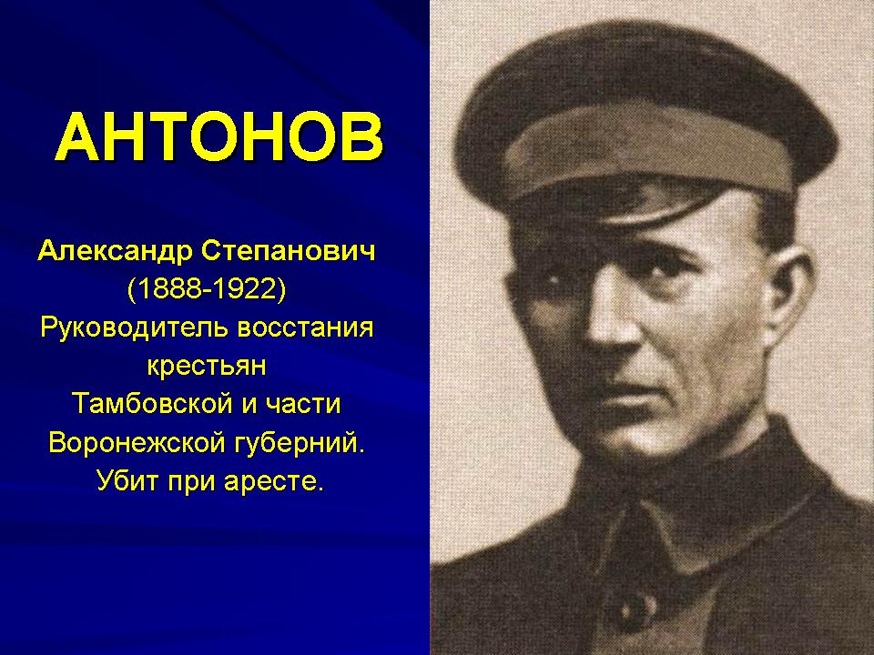 - Крестьяне: отряды Антонова, Махно – “Малая Гражданская война”. Лозунги – “Долой продразверстку” “Даешь свободу торговли”, “Советы без коммунистов”