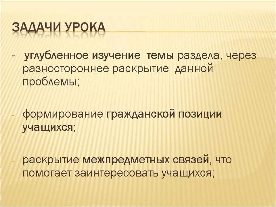 - углубленное изучение темы раздела, через разностороннее раскрытие данной проблемы;