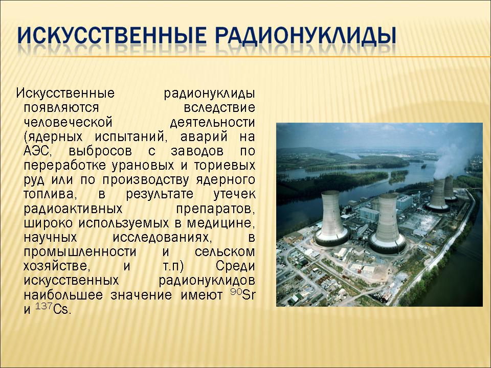 Природные источники: космические лучи, радионуклеотиды в почве, подземных водах, в атмосфере;
