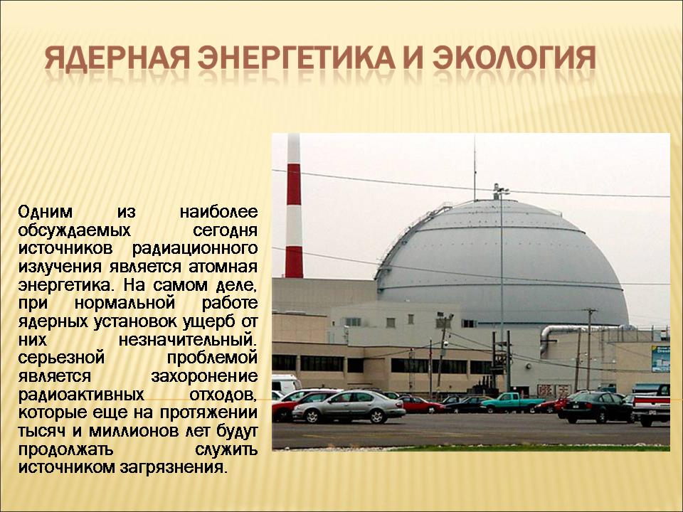 Предприятия ядерной промышленности и энергетики размещены на территории многих высокоразвитых стран и создают еще один источник техногенного облучения. Радиоактивные выбросы атомных станций и предприятий ядерной промышленности регулируются крайне жесткими нормативами, и, поэтому, практически не изменяют природный фон и содержание радионуклидов в окружающей среде. Такие оценки справедливы для нормально работающих ядерных установок. Конечно, радиационное воздействие значительно повышается в аварийных ситуациях.. К сожалению, именно масштабы возможных аварий, а не уровень воздействия в условиях нормальной эксплуатации, в значительной степени определяют негативное отношение общественности к ядерной промышленности и энергетике.