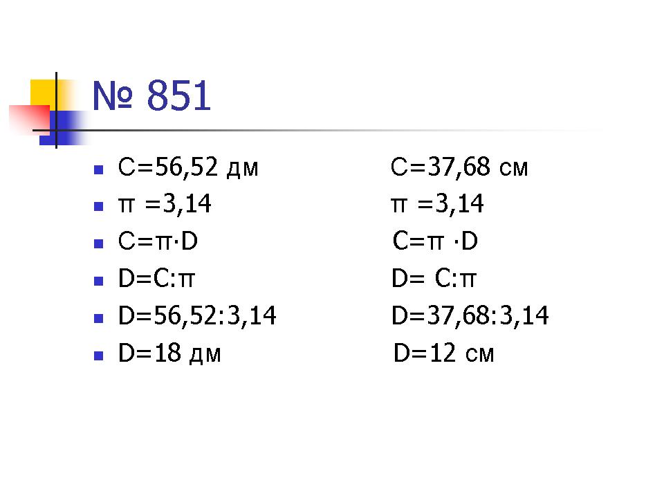 д) № 851- самостоятельно с последующей проверкой. (Слайд №18)