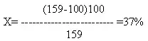 Искомое число: разница массы брутто и массы нетто (216-159)_____________ х%
