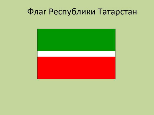 Наш флаг трехцветный. Зеленый цвет означает - зелень весны, возрождение, белый - цвет чистоты, красный - зрелость, энергия, сила, жизнь. А все вместе это символизирует процветание нашей Республики. (Слайд 2)