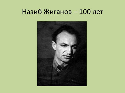 Назиб Жиганов был талантливым композитором, выдающимся общественным деятелем. О масштабе его личности говорит тот факт, что на небе малая планета носит его имя. Его именем названа Казанская государственная консерватория, созданная и возглавляемая им на протяжении 40 лет. Многие свои произведения Жиганов посвятил детям. (Слайд 15)