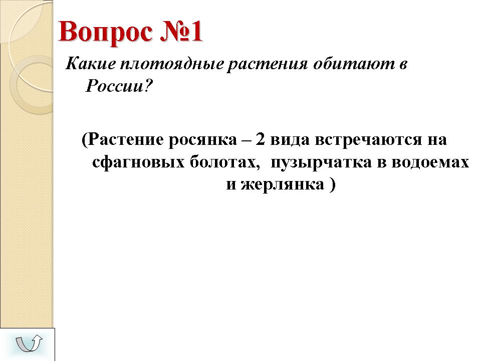 Слайд 5. Вопрос 1. Какие плотоядные растения обитают в России?