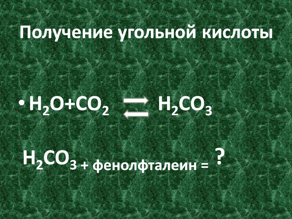 - получение угольной кислоты - 2 мин. - Обеспечение планированного уровня знаний и корректировка: