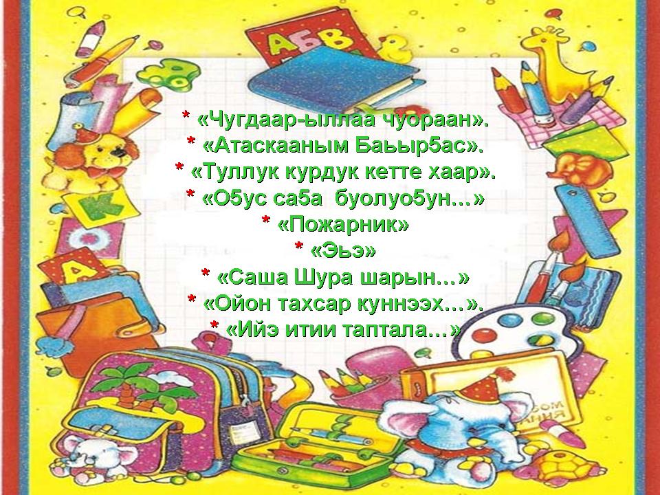 Учуутал: Азбукабыт барахсан биьиэхэ ессе да элбэ5и уерэттэ. Олортон ордук себулээбит хоьоонноргутун санаан ааьыа5ыц. . (10 слайд)