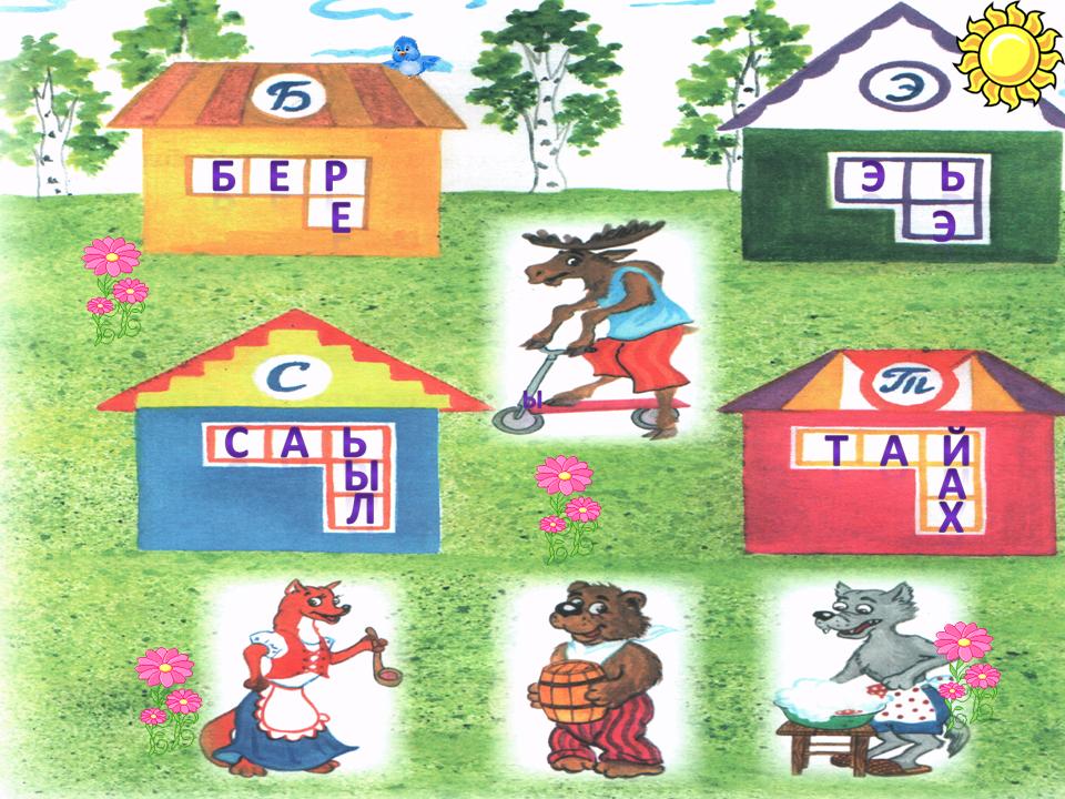 (Саьыл, куба, былаах, кустук, киистэ, бере, эьэ, алта) - Кыыллар дьиэлэрин булларыы. (7 слайд)