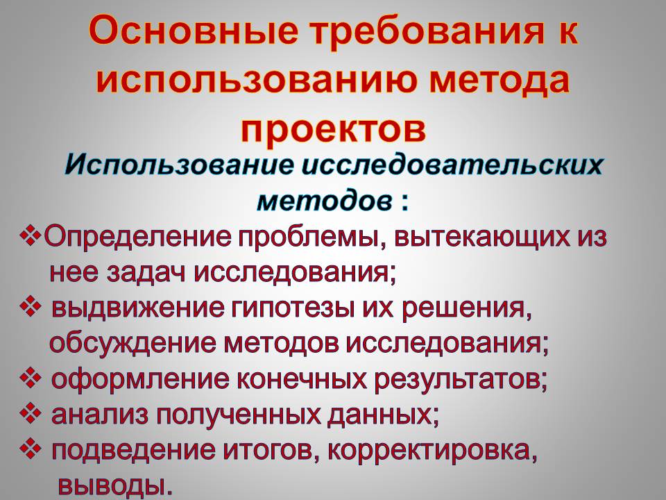 Основные требования, которые я строго соблюдаю, используя метод проектов в исследовательской работе.