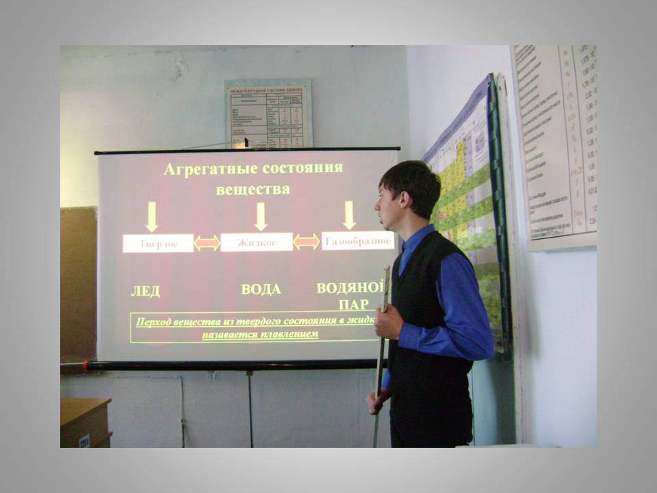 Потом были проекты и для молодых специалистов, завучей школ, физиков, математиков. В феврале месяце 2011 года для учителей физиков района показала обобщающий исследовательский проект «Агрегатные состояния вещества. Тепловые переходы» 8 класс. Это фотографии с проектного урока, который я давала своим коллегам по предмету. (слайд № 15 – 17) При выполнении проектной деятельности стандартно создаются: презентация и буклет проекта, (слайд № 18- 19) методические и дидактические материалы.