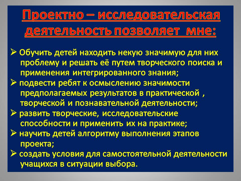 Проектно-исследовательская деятельность позволяет мне: (слайд 20)