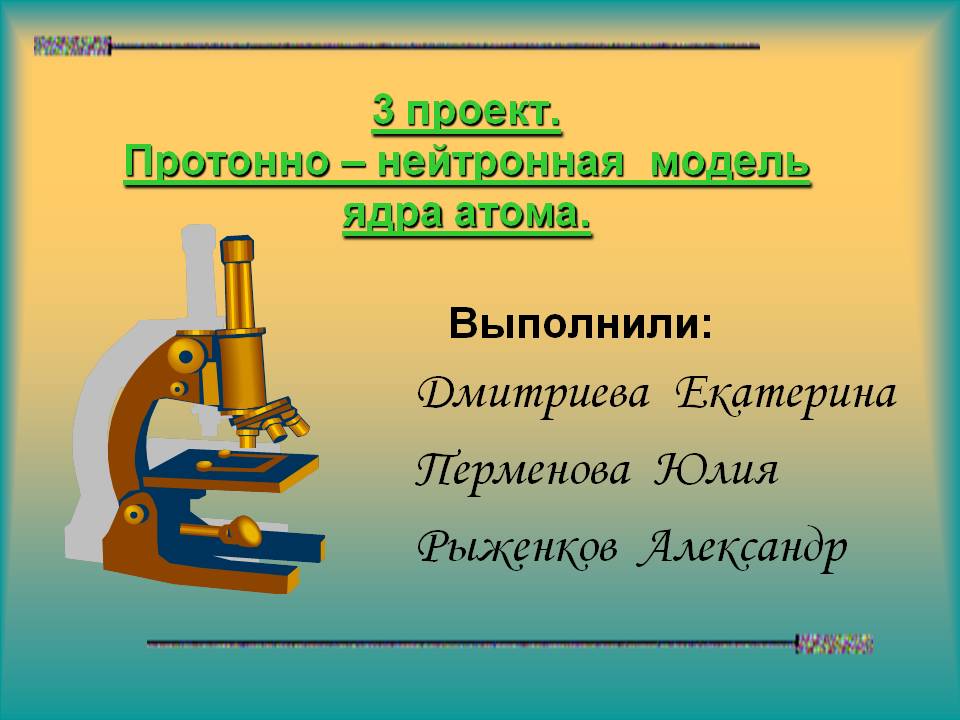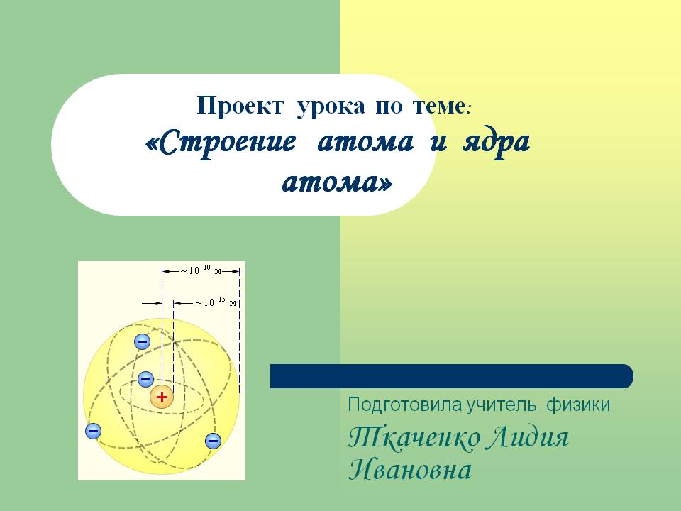 Вводный, перед изучением нового материала – «Атом. Строение атома» -11 класс. После курсов: - «Работа в программе Intel® «Обучение для будущего», администрация РОО, а это был 2004 год, обратилась с просьбой, показать директорам школ района работу в этой программе. И мы с учениками 11 класса ровно месяц по три дня в неделю сидели за тремя компьютерами, и готовили вводный проект к теме: «Атом. Строение атома». Создала свой проект, который позволил сконцентрировать внимание учащихся на главной цели проектного урока: