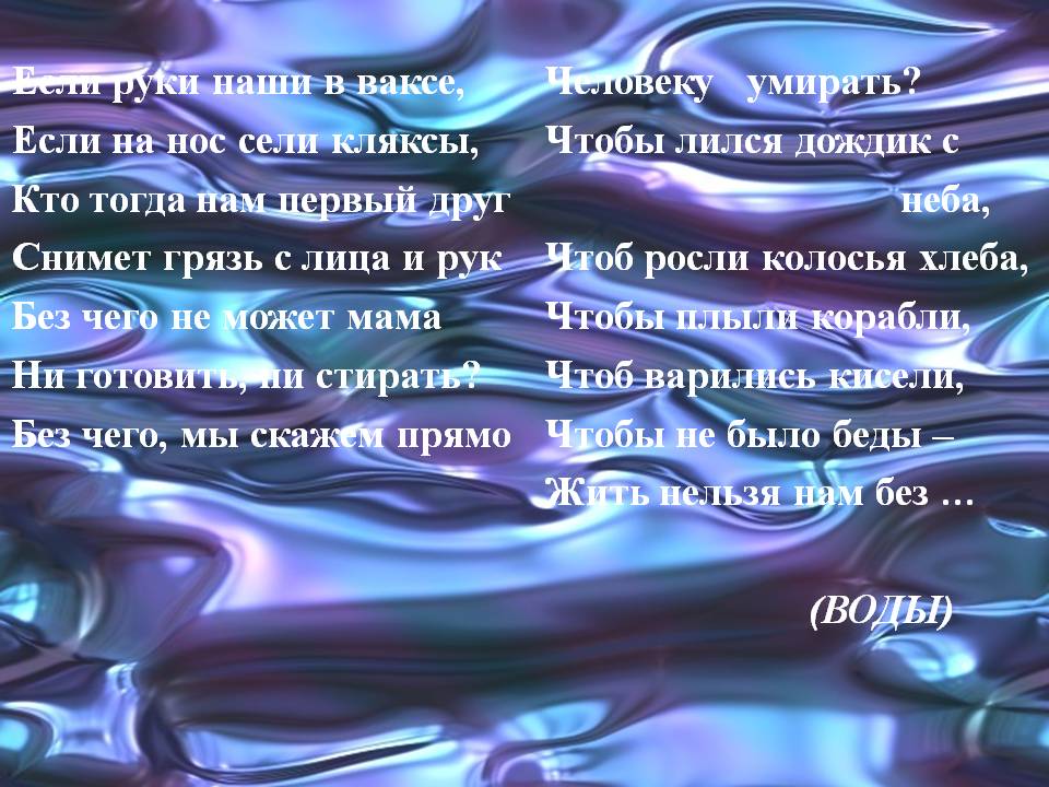 - Воспитательные: способствовать бережному отношению к воде и водоемам.