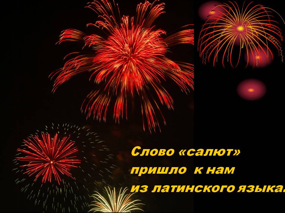 - Откуда пришло к нам слово? (Слово «салют» пришло к нам из латинского языка.)