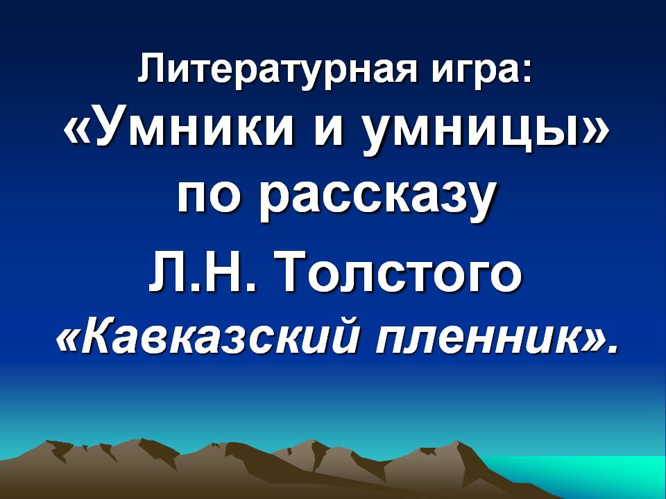 Литературная игра: «Умники и умницы» по рассказу Л.Н. Толстого «Кавказский пленник». 5 класс