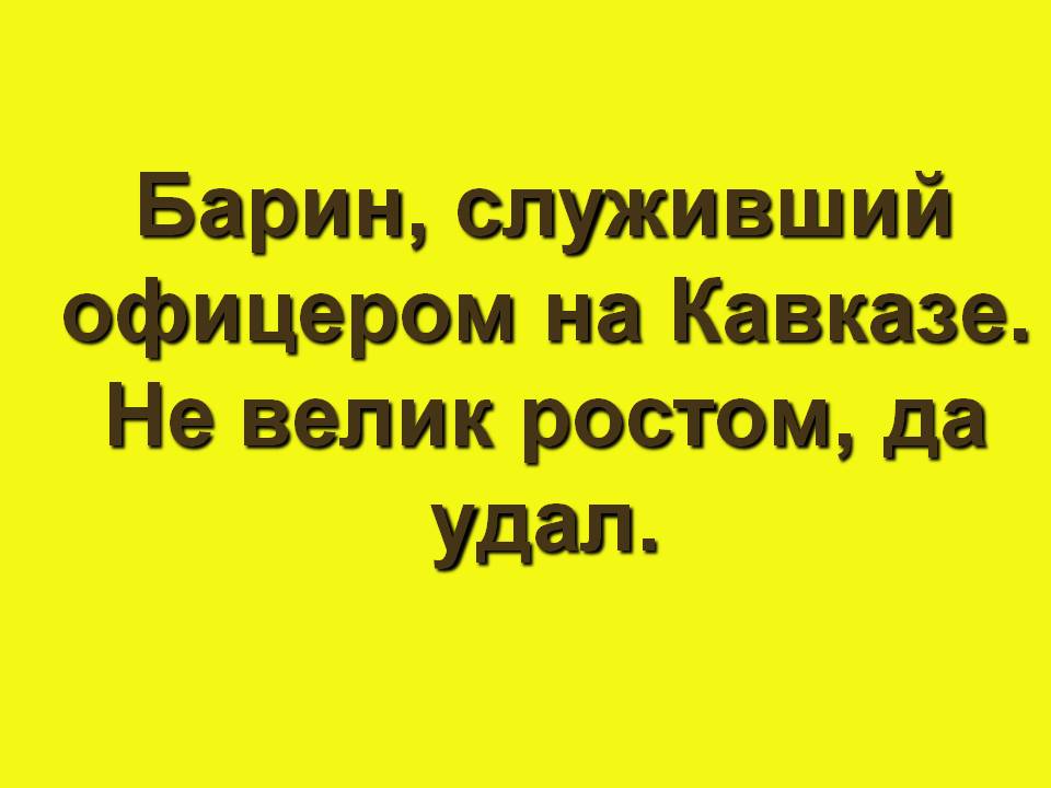 Жёлтая дорожка. Барин, служивший офицером на Кавказе. Не велик ростом, да удал. (Жилин).