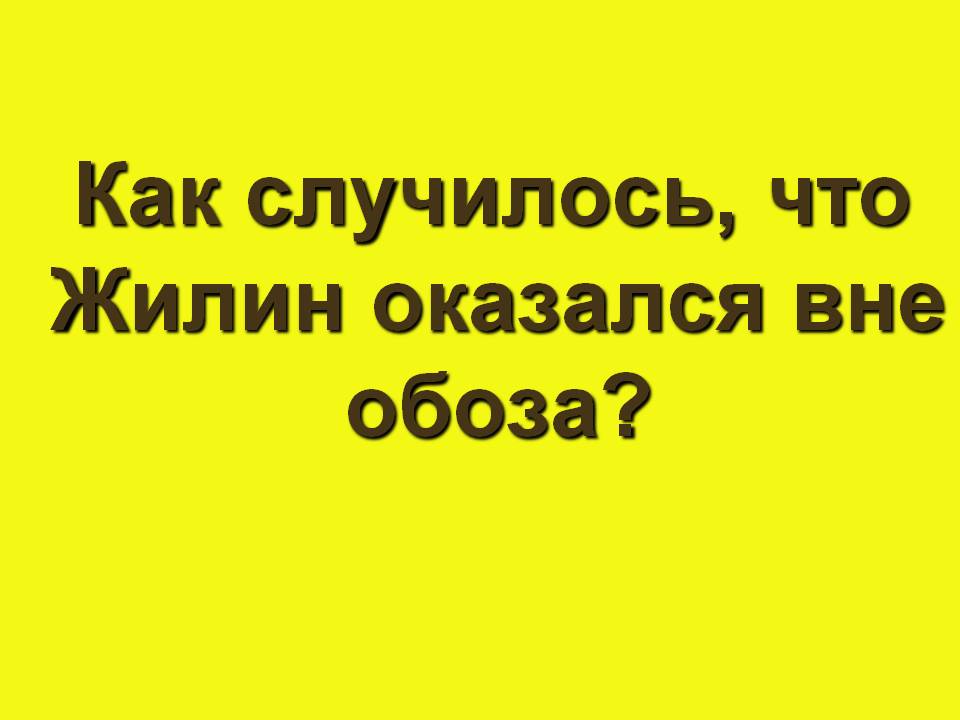 Жёлтая: Как случилось, что Жилин оказался вне обоза? (Обоз двигался очень медленно. «Выехал Жилин вперёд, остановился и ждёт, пока подойдёт к нему обоз. Слышит, сзади на рожке заиграли – опять стоять. Жилин и подумал: «А не уехать ли одному, без солдат? Лошадь подо мной добрая, если и нападусь на татар, - ускачу. Или не ездить?..» Остановился, раздумывает. И подъезжает к нему на лошади другой офицер - Костылин, с ружьём и говорит: «Поедем, Жилин, одни. Мочи нет, есть хочется, да и жара. На мне рубаху хоть выжми.… Подумал Жилин и говорит: «А ружьё заряжено?