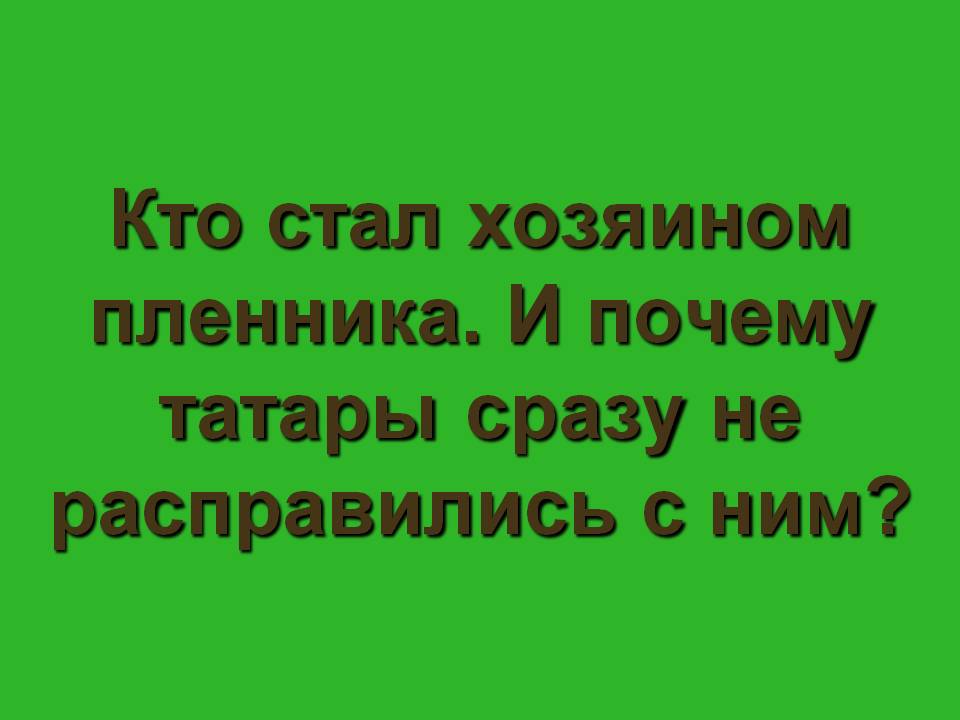 Зелёная. Кто стал хозяином пленника. И почему татары сразу не расправились с ним? (Один из гостей-татар повернулся к Жилину, стал говорить по-русски.