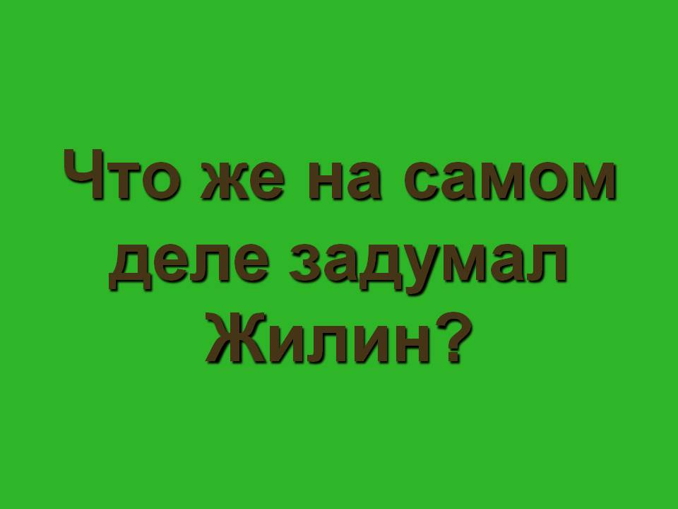 Зелёная. Что же на самом деле задумал Жилин? (Написал Жилин письмо, а на письме не так написал, - чтобы не дошло. Сам думает: «Я уйду» «Где,- думает,- матери столько денег взять за меня заплатить. И то она тем больше жила, что я посылал ей. Если ей 500 рублей собрать, надо разориться вконец; Бог даст – и сам выберусь.)
