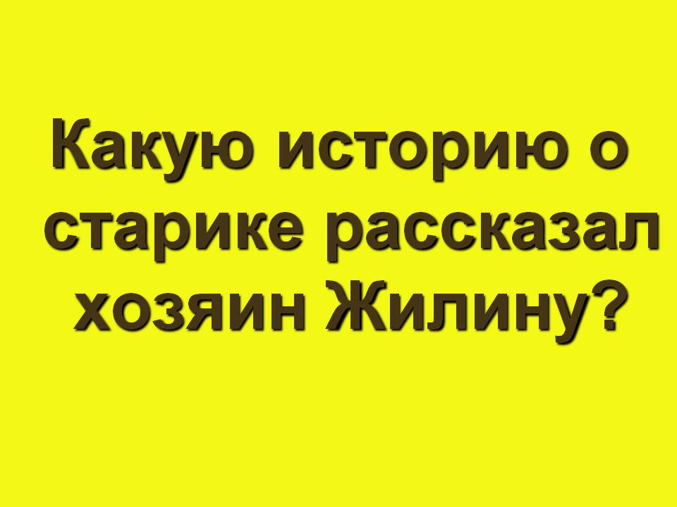 Жёлтая дорожка. Какую историю о старике рассказал хозяин Жилину? («Это большой человек! Он первый джигит был, он много русских побил, богатый был. У него было три жены и восемь сынов. Все жили в одной деревне. Пришли русские, разорили деревню и семь сыновей убили. Один сын остался и передался русским. Старик поехал и сам передался русским. Пожил у них три месяца; нашёл там своего сына, сам убил его и бежал. С тех пор он бросил воевать, пошёл в Мекку Богу молиться, от этого у него чалма. Кто в Мекке был, тот называется Хаджи и чалму надевает. Не любит он вашего брата.»)