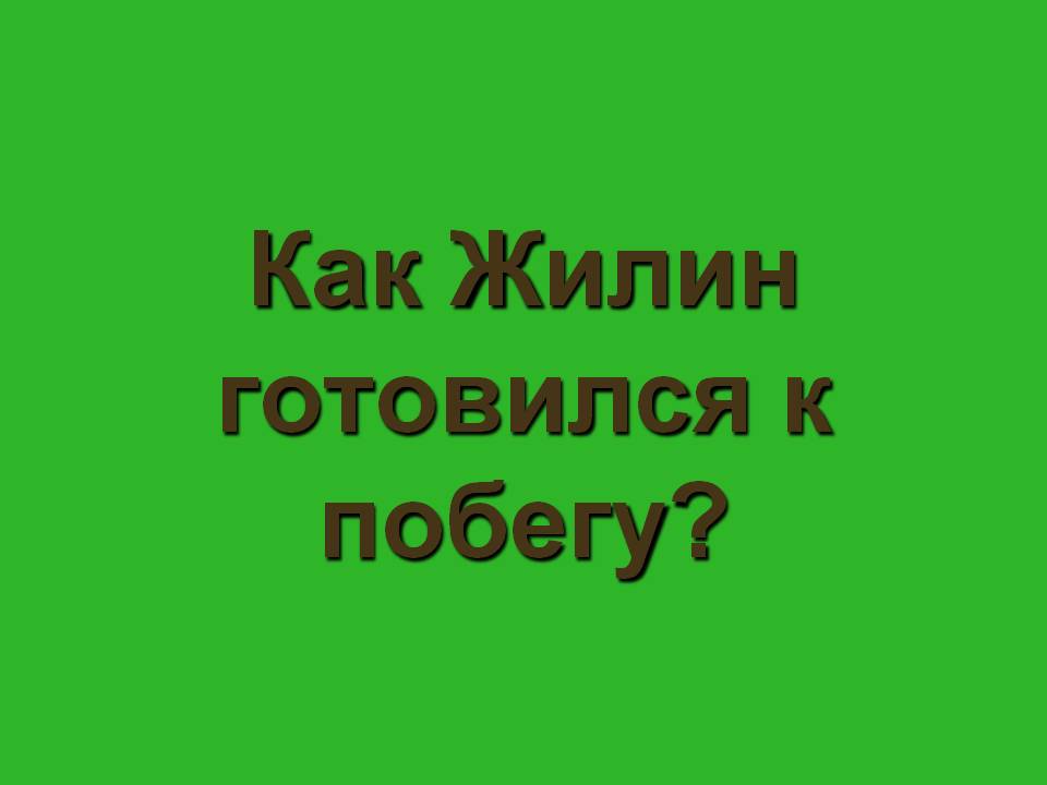 Зелёная дорожка. Как Жилин готовился к побегу? (Жилин провел в плену месяц. «Днём ходит по аулу, или рукодельничает, а как ночь придёт, затихнет в ауле, так он у себя в сарае копает. Трудно было копать от камней, да он подпилком камни тёр, и прокопал он под стеной дыру. Что в пору пролезть. «Только бы, - думает,- мне место хорошо узнать, в какую сторону идти…».)