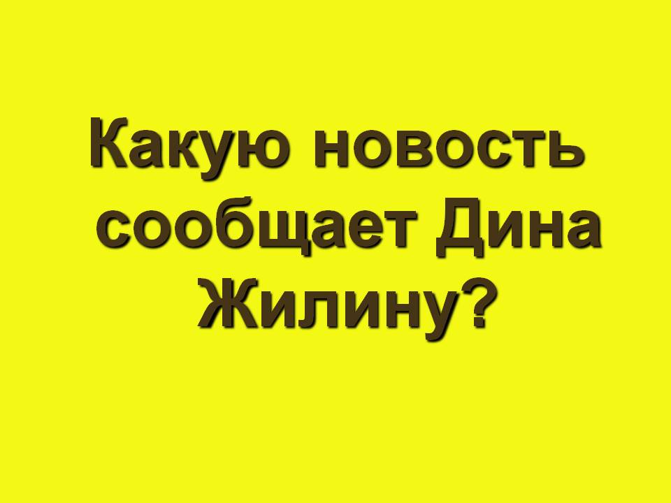 Жёлтая дорожка. Какую новость сообщает Дина Жилину? («Иван, тебя убить хотят. Сама себе рукой на шею показывает. Ж: Кто убить хочет? Д: Отец, ему старики велят, а мне тебя жалко».)