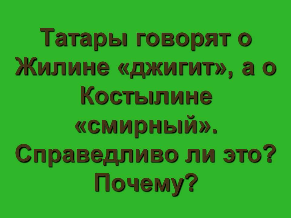 Зелёная дорожка. Татары говорят о Жилине «джигит», а о Костылине «смирный». Справедливо ли это? Почему?