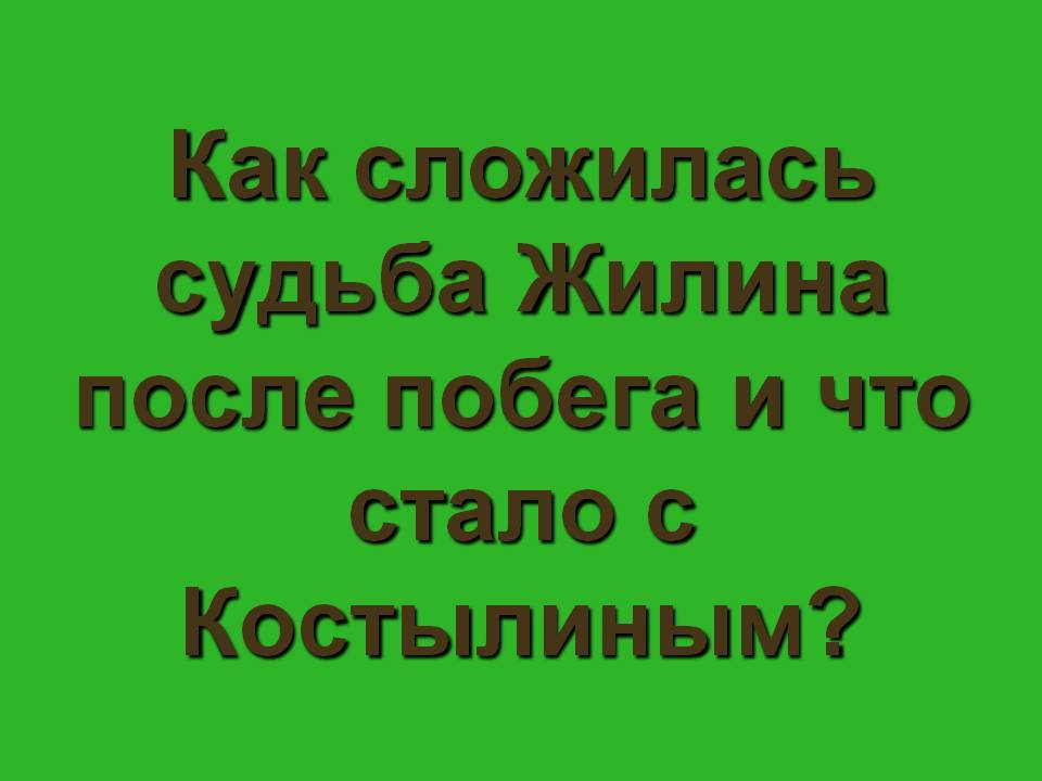 Зелёная дорожка. Как сложилась судьба Жилина после побега и что стало с Костылиным? (После побега Жилин остался служить на Кавказе, а в отпуск не поехал. «А Костылина только через месяц выкупили за пять тысяч. Еле живого привезли».)