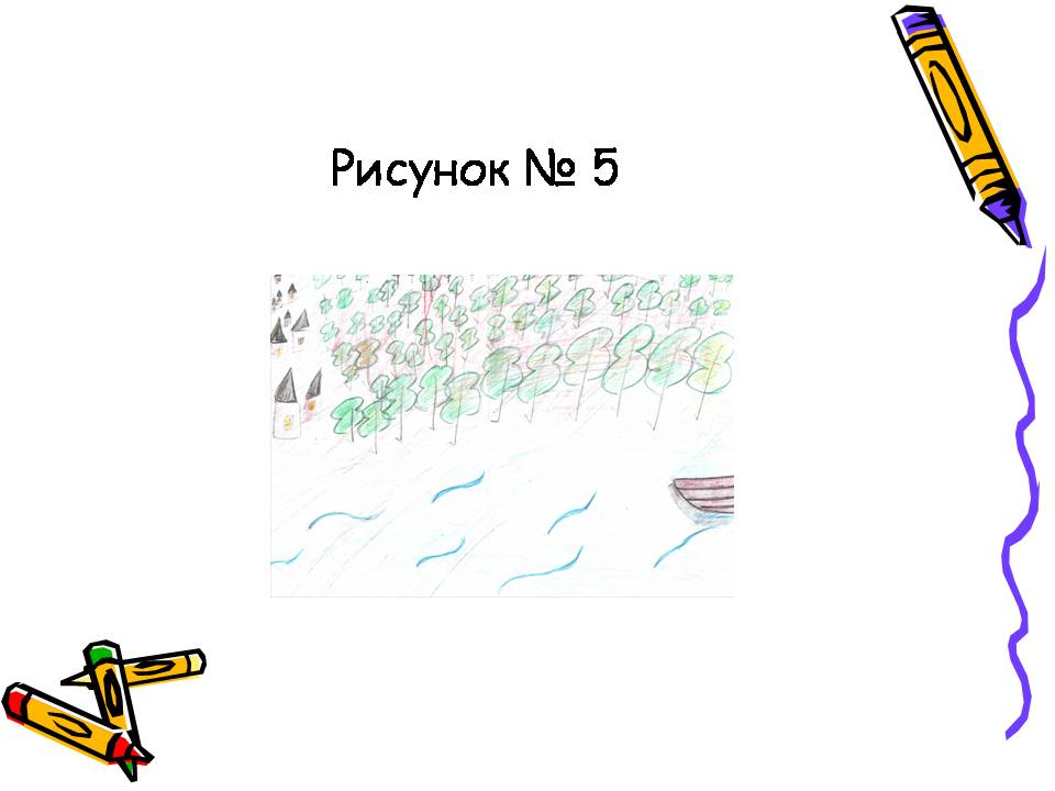 Ученики получили предварительное домашнее задание: печатный фрагмент рассказа К.Г. Паустовского «Желтый свет» (со слов «До вечера мы удили вместе...» до слов «...покрывая землю своей тончайшей пряжей»), содержание которого они должны были передать в виде рисунка. Рисовали не все, и это не суть важно (некоторые дети сослались на отсутствие художественных способностей, по этой причине я просила всех не подписываться). Основной акцент я делала на то, смогут ли ребята увидеть все основные образы, ключевые слова, а, следовательно, готовы ли они к выделению микротем.