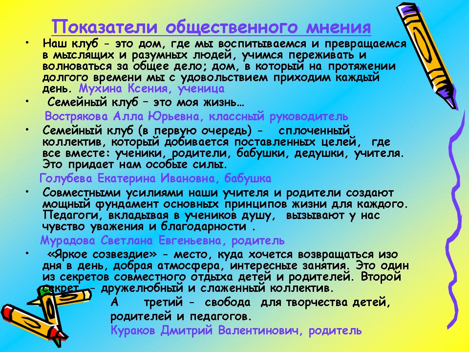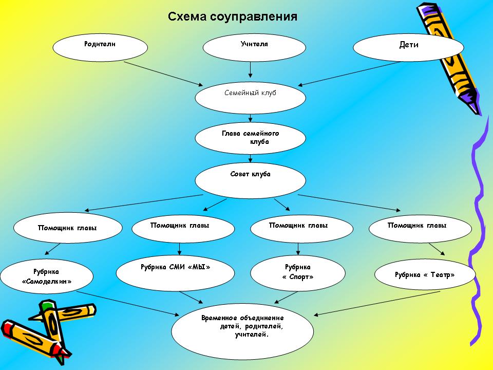Объединение детей – дело серьезное. Однако для ребенка – это, прежде всего, игра, с ее радостями и переживаниями. И как всякая игра она имеет свои законы, свои правила. У каждого участника есть своя роль, своя сфера приложения интереса. Все это учитывалось, когда, совместно с родителями, пришли к выводу, что нам нужна организация, где дети взаимодействуют с родителями, с ними творят, познают, дружат. Познакомившись с опытом других педагогов, мы решили организовать семейный клуб «Яркое созвездие». Организуя эту модель содружества, мы понимали, что для детей это будет игра длительная по времени и воспитывающая по характеру. Это игра длиной в четыре года, то есть время, проводимое ребенком в начальной школе.